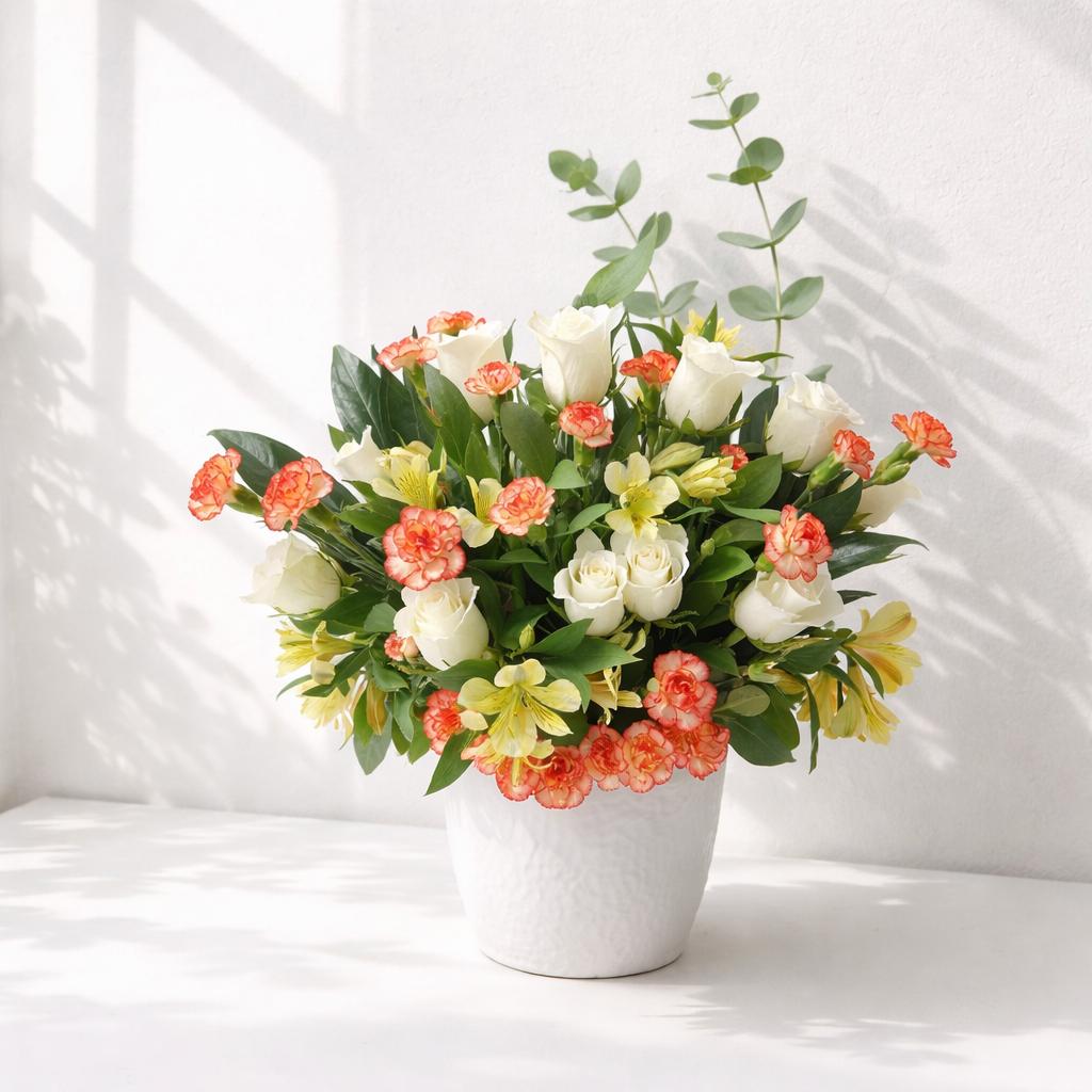 Nuestros arreglos florales son diseñados de manera personalizada, cuidando cada detalle para crear composiciones únicas y llenas de significado. Cada flor es cuidadosamente seleccionada por su frescura, calidad y belleza, garantizando que cada arreglo transmita elegancia, armonía y emoción.